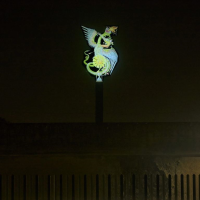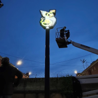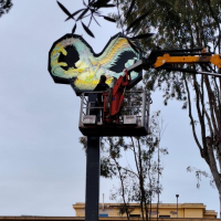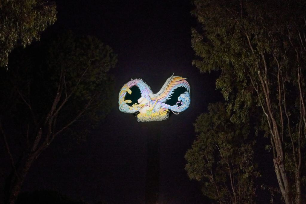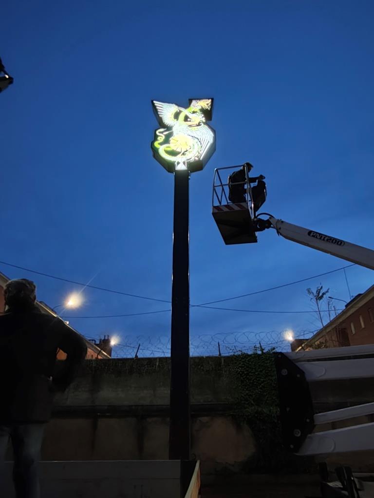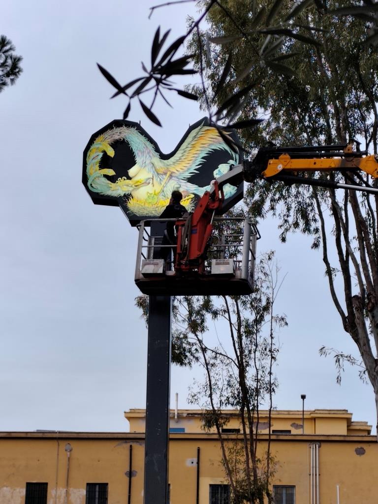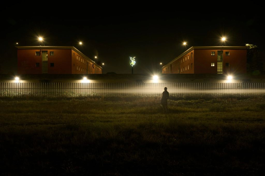 Eugenio Tibaldi svela l’opera permanente che condensa desideri, speranze e voglia di riscatto delle detenute di Rebibbia: due enormi fenici luminose da tre metri per due svettano nei cieli di Roma, trattenute a terra da due enormi pali alti dodici metri.