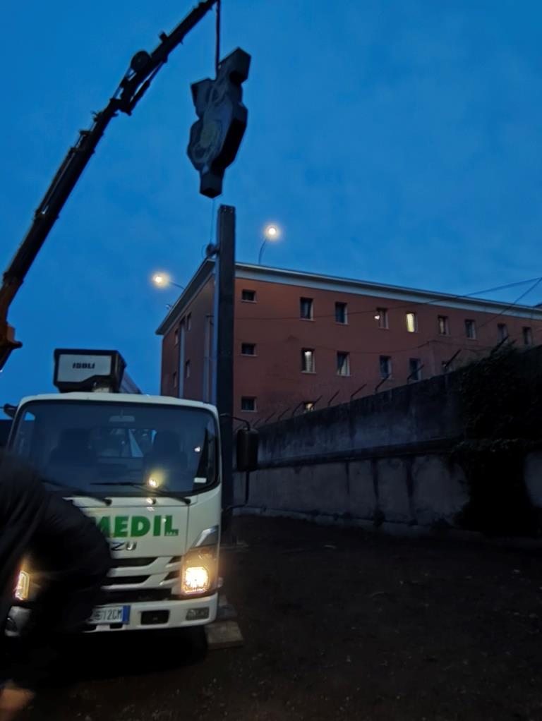 Per illuminarsi durante la notte, queste immagini hanno bisogno della forza attiva delle donne ristrette. Rispondendo al desiderio di dotare la struttura di attrezzi ginnici, l’artista ha infatti proposto di installare delle cyclette collegate a generatori elettrici; grazie al lavoro fisico di ogni persona che utilizza questi attrezzi, viene prodotta e accumulata l’energia che ogni notte, ad un orario preciso, accende le immagini, collegando la loro visibilità all’esperienza quotidiana e alla volontà delle detenute.